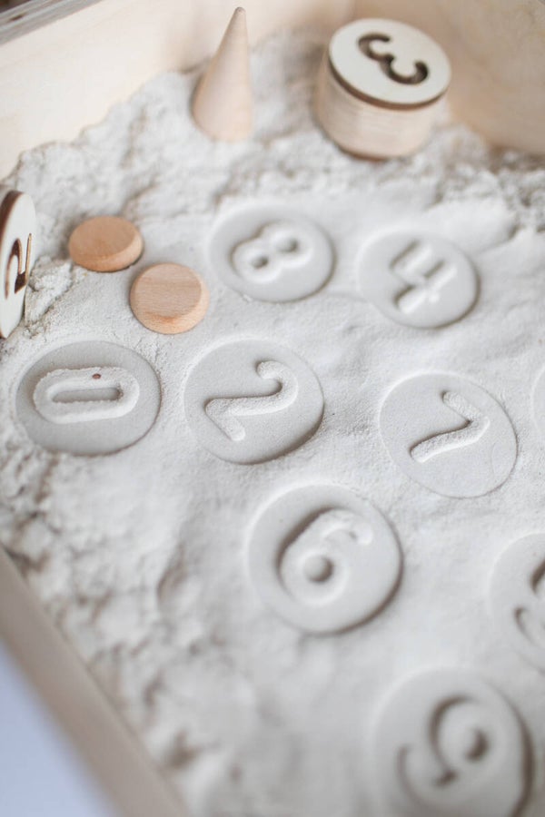 Deze grote houten stempels zijn een ideale manier om kinderen spelenderwijs kennis te laten maken met cijfers. Perfect te gebruiken in kinetisch zand, klei of andere creatieve materialen. Met deze set leren kinderen niet alleen de cijfers herkennen, maar ook oefenen met schrijven en tellen.