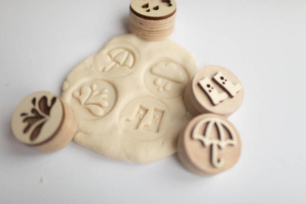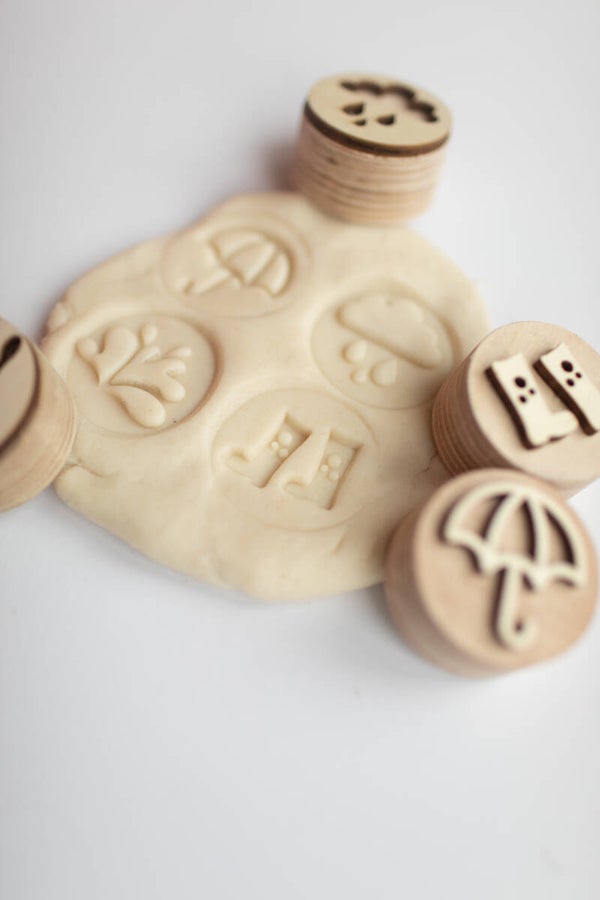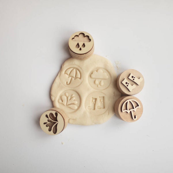 Deze grote houten stempels brengen het regenweer op een speelse en creatieve manier naar de speelbak, klei of knutselwerkjes. Laat kinderen hun eigen regenbuien en plassen creëren en ontdek samen de mooiste regenachtige avonturen!