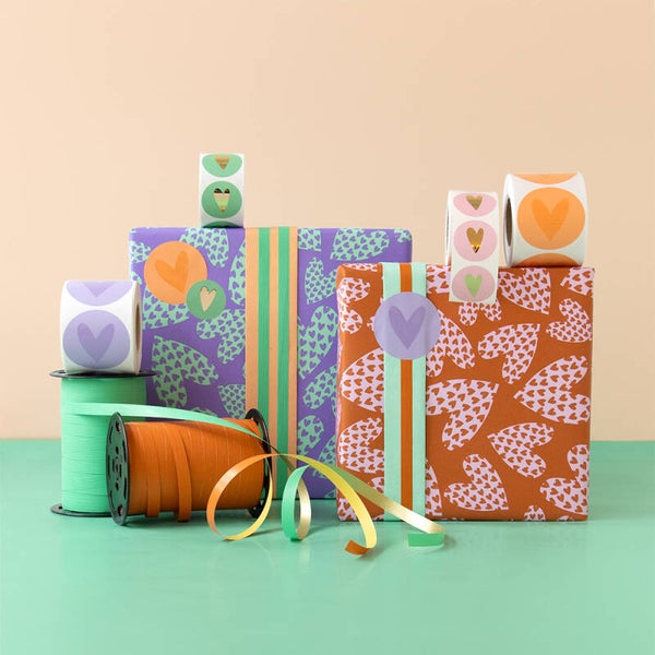 Dit prachtige uncoated design is gevuld met hartjes in cognac en roze, wat zorgt voor een warme, liefdevolle uitstraling. De pastel mint achterzijde voegt een frisse en speelse touch toe aan je inpakcreaties. Dit papier is perfect voor elke gelegenheid waarbij je je liefde en warmte wilt overbrengen, van verjaardagen tot Valentijnsdag.