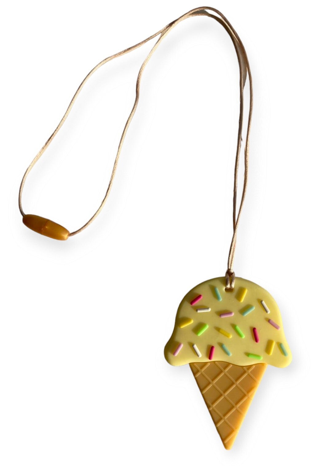 Deze speelse bijtketting met ijsje bijtfiguur in een gele kleur is perfect voor kinderen die houden van een vrolijk en stijlvol kauwsieraad. Het ijsje is gemaakt van hoogwaardige siliconen van medische kwaliteit, wat zorgt voor veiligheid en comfort tijdens het kauwen. Het zandkleurig koord en de goudkleurige sluiting maken de ketting extra charmant en kleurrijk.