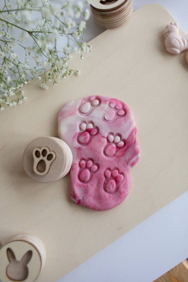 Deze grote houten stempels zijn ideaal voor het gebruik in kinetisch zand en klei! Perfect voor een creatieve Paasactiviteit met de kinderen. 🐰🌷