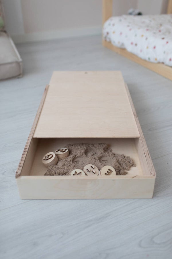 ✔ Inclusief schuifdeksel: De speelbak wordt geleverd met een schuifdeksel, ideaal om kinetisch zand en andere materialen netjes op te bergen. De deksel helpt het zand vochtig te houden, maar is niet noodzakelijk voor het zand om niet uit te drogen.