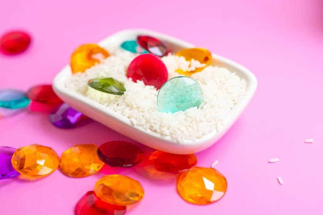 Verstop munten, diamanten en edelstenen in het zand en gebruik een schepje om ze te zoeken – hoe spannend is dat? Deze edelstenen bieden eindeloze mogelijkheden voor denkbeeldig spel en laten kinderen hun creativiteit de vrije loop.