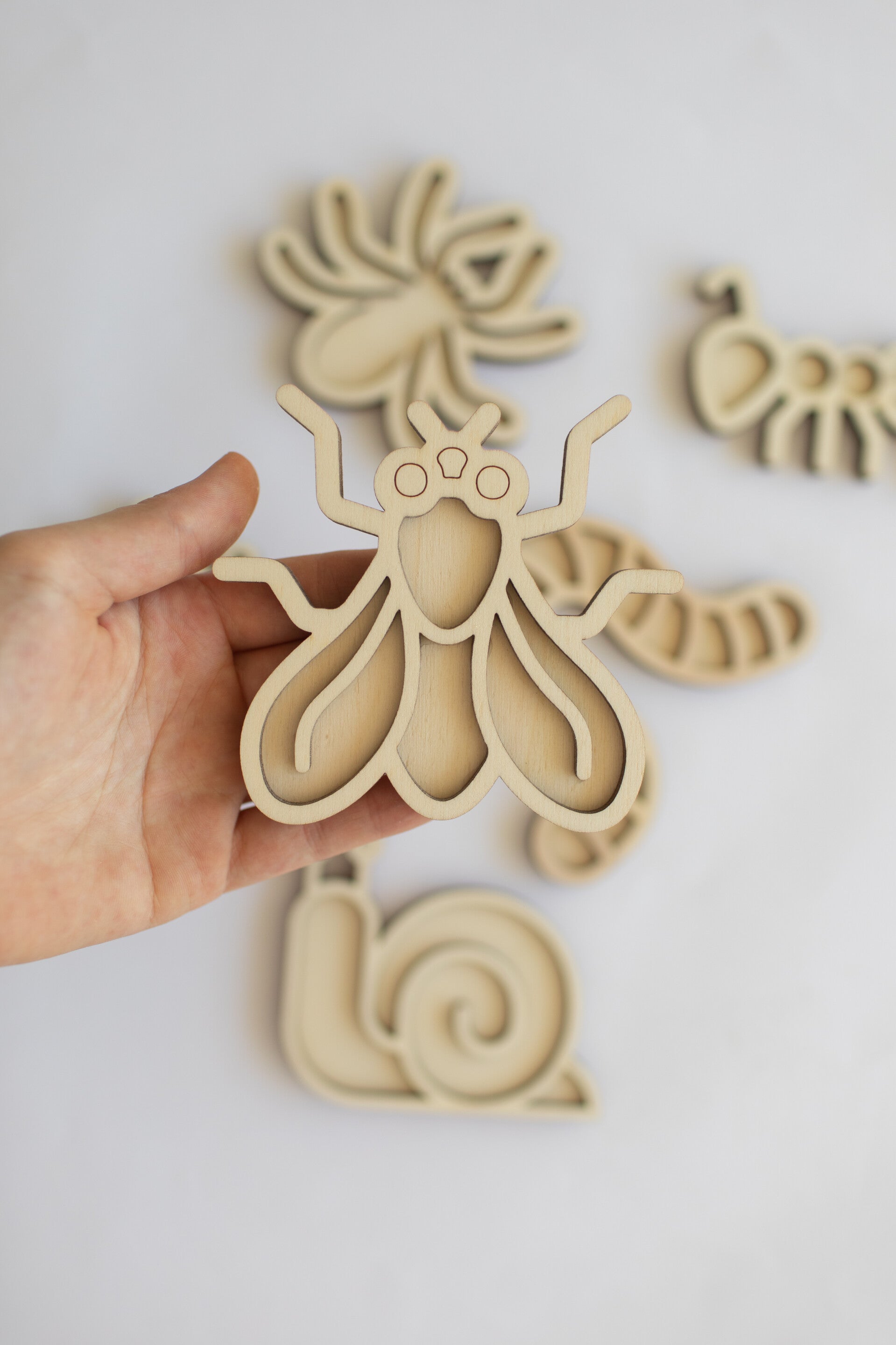 Duik in de fascinerende wereld van kriebelbeestjes met deze houten speeltrays! Perfect voor sensorisch spel en het ontwikkelen van de fijne motoriek. Vul de trays met zand, rijst of andere materialen en laat kinderen de insectenwereld ontdekken!