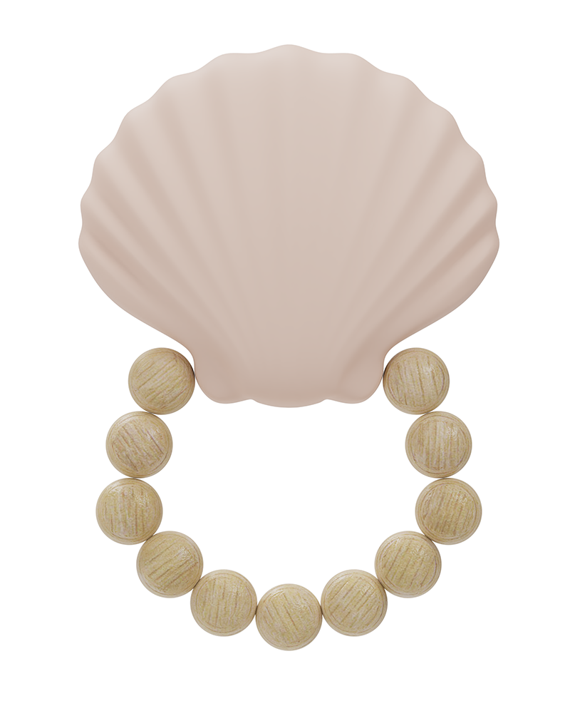 Deze schelp bijtring van siliconen en FSC-hout is het ideale bijtspeeltje voor baby’s die last hebben van doorkomende tandjes. Het zachte, flexibele siliconen gecombineerd met duurzame FSC-houten kralen biedt een comfortabele afleiding en helpt het ongemak te verlichten. Het elegante schelpdesign voegt een chique uitstraling toe, terwijl het ergonomische ontwerp prettig in kleine handjes ligt.