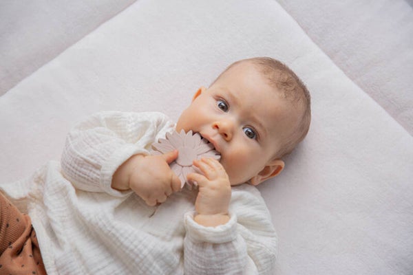 Deze zonnebloem bijtring van siliconen is het ideale bijtspeeltje voor baby’s die last hebben van doorkomende tandjes. Het zachte, flexibele materiaal biedt een comfortabele afleiding en helpt het ongemak te verlichten. Het ergonomische ontwerp ligt prettig in kleine handjes en stimuleert tegelijkertijd de grip en tactiele ontwikkeling van je kindje. De bijtring is gemaakt van 100% veilig, niet-giftig siliconen.