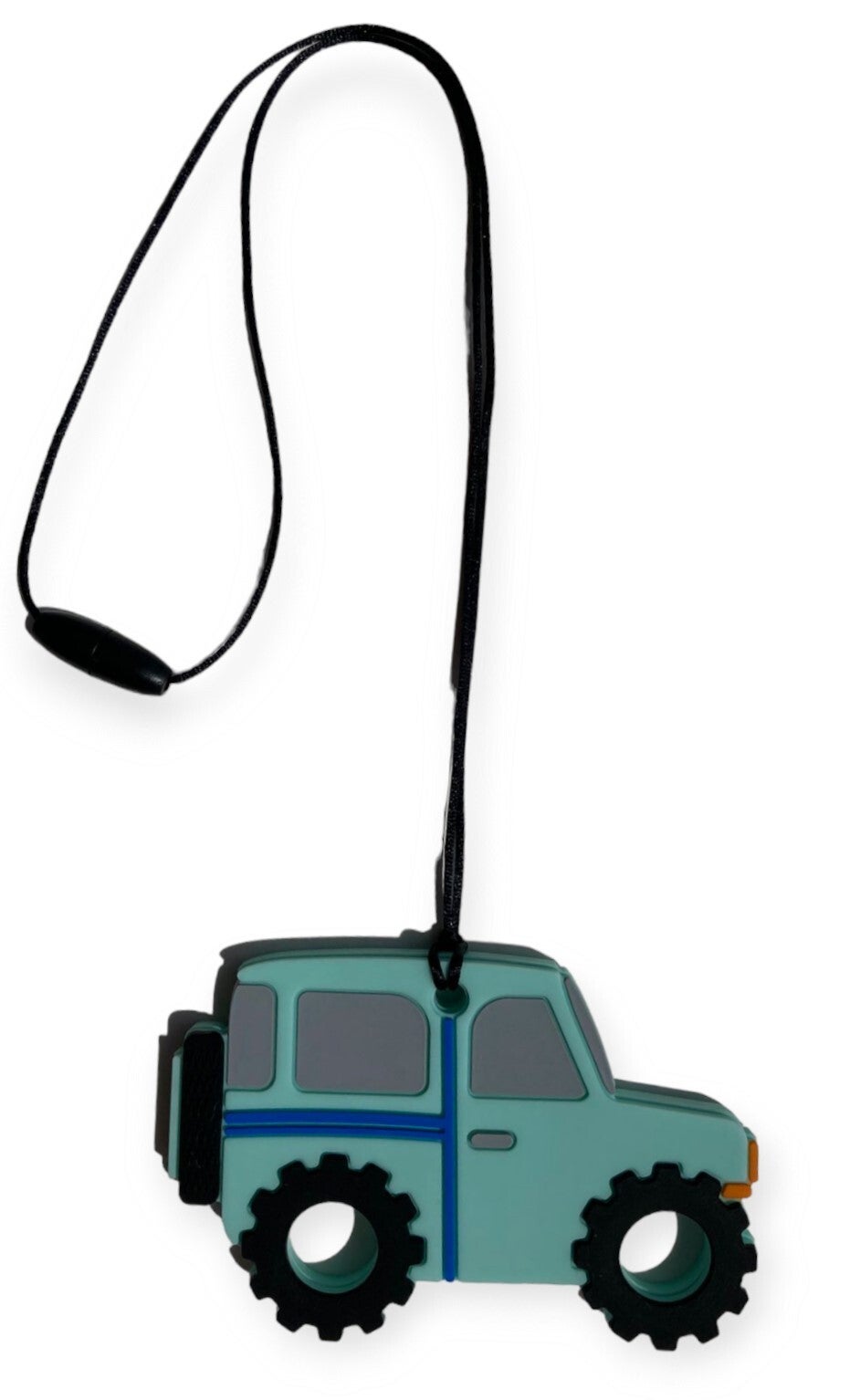 Deze stoere bijtketting met truck bijtfiguur is een perfecte keuze voor kinderen die graag stevig kauwen. De groene truck is vervaardigd uit hoogwaardige siliconen van medische kwaliteit en voelt comfortabel en duurzaam aan tijdens het kauwen. Het zwarte koord en de zwarte sluiting geven de ketting een robuuste, tijdloze uitstraling.