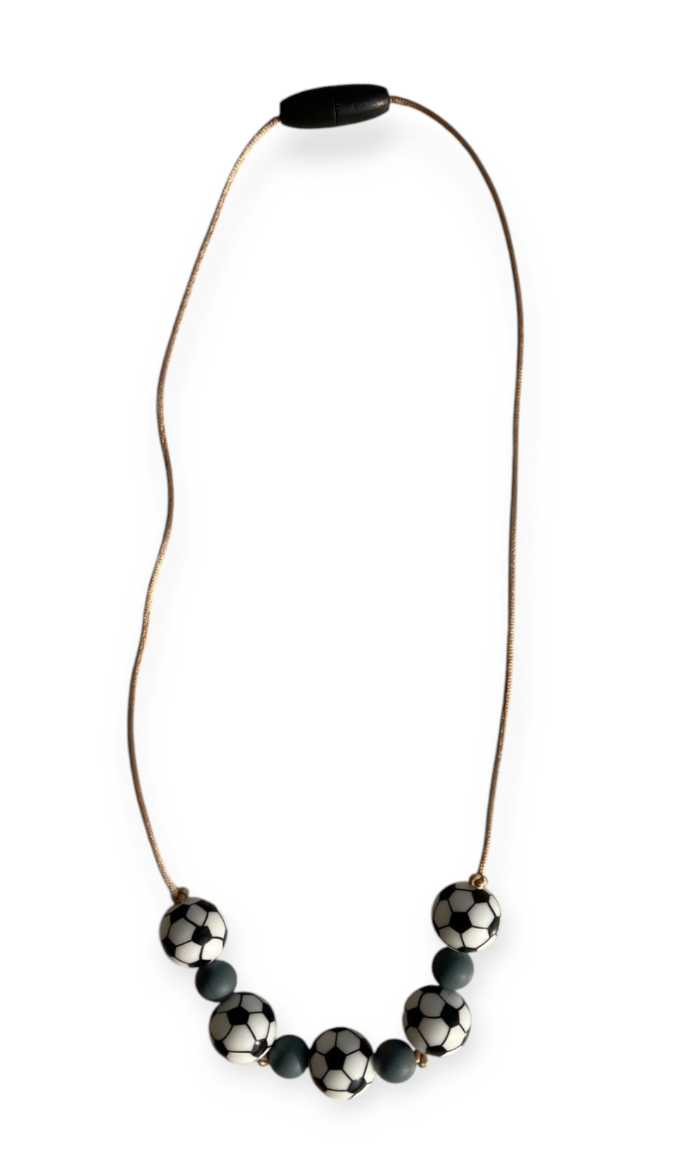 Deze stoere kinderketting is perfect voor jonge voetbalfans die houden van sportieve accessoires. Het speelse ontwerp met meerdere voetballetjes en groene kralen maakt de ketting tot een echte blikvanger. Het zandkleurige koord en de zwarte sluiting zorgen voor een speelse, moderne look die past bij elke outfit.