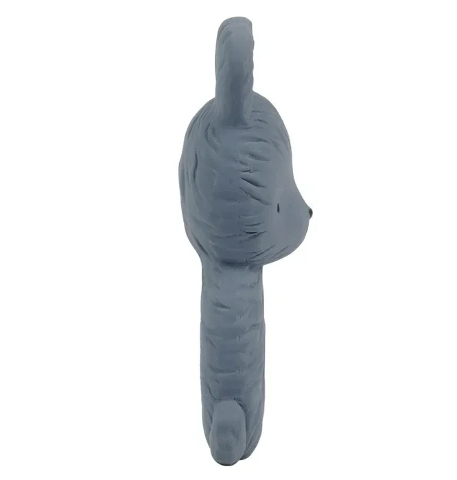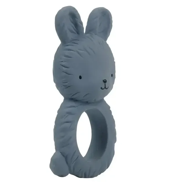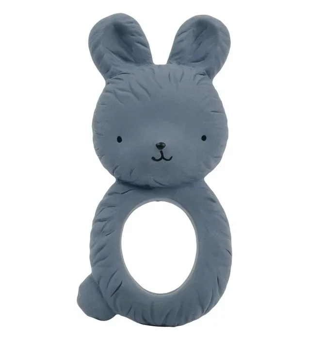 Deze grijsblauwe konijn bijtring van natuurlijk rubber is het ideale bijtspeeltje voor baby’s die last hebben van doorkomende tandjes. Het zachte, flexibele rubber biedt een comfortabele afleiding en helpt het ongemak te verlichten. Het ergonomische ontwerp ligt prettig in kleine handjes en stimuleert tegelijkertijd de grip en tactiele ontwikkeling van je kindje. De bijtring is gemaakt van 100% natuurlijk rubber van de Hevea-boom, volledig veilig en vrij van schadelijke stoffen.