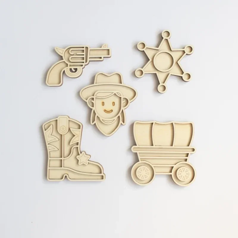 Stap in het wilde westen met deze houten speeltrays in een cowboy-thema! Perfect voor sensorisch spel en het ontwikkelen van de fijne motoriek. Vul de trays met zand, rijst of andere materialen en laat kinderen spelenderwijs het leven van een cowboy ontdekken!