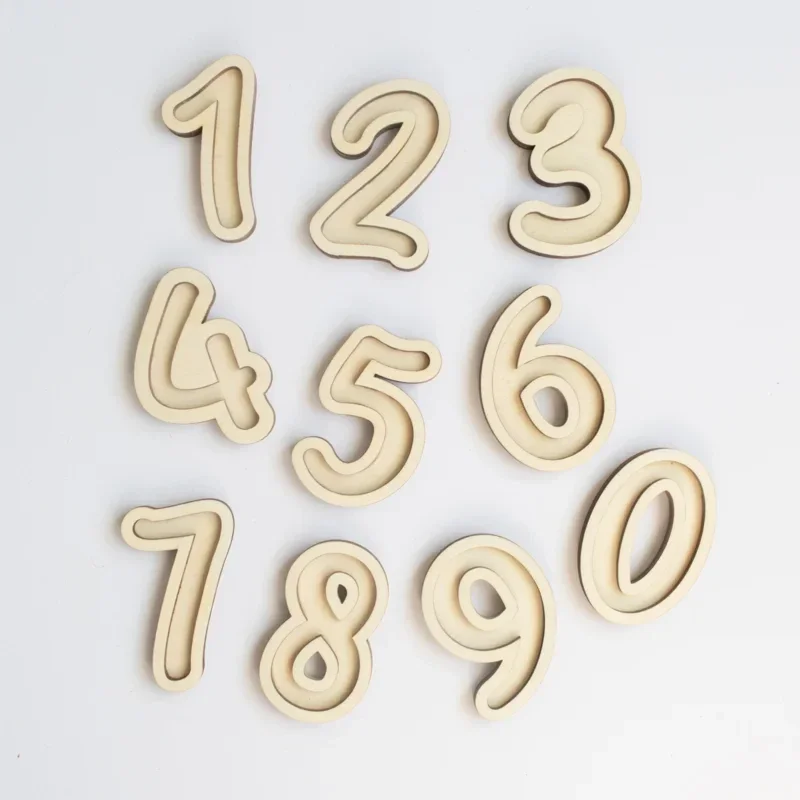 Met deze houten speeltrays leren kinderen de cijfers 0 tot en met 9 op een speelse manier kennen. Ideaal voor sensorisch spel en het ontwikkelen van de fijne motoriek. Vul de trays met materialen zoals zand, rijst of klei en laat kinderen experimenteren, ontdekken en spelenderwijs cijfers herkennen.