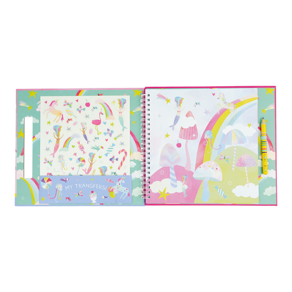 Breng jouw fantasiewereld tot leven met de Transfer Fun Fantasie! Met meer dan 150 prachtige transfers kunnen kinderen eenvoudig illustraties overzetten op de 6 kleurrijke achtergronden of zelf hun eigen ontwerpen maken op de blanco pagina’s. Dankzij het handige transferpotlood worden creaties snel en precies overgezet, wat zorgt voor eindeloos plezier en creatieve vrijheid.
