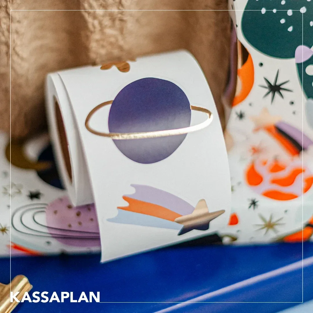 Een unieke sticker voor wie houdt van sterren, planeten en een beetje sparkle en graag iets extra’s toevoegt aan het moment van geven.