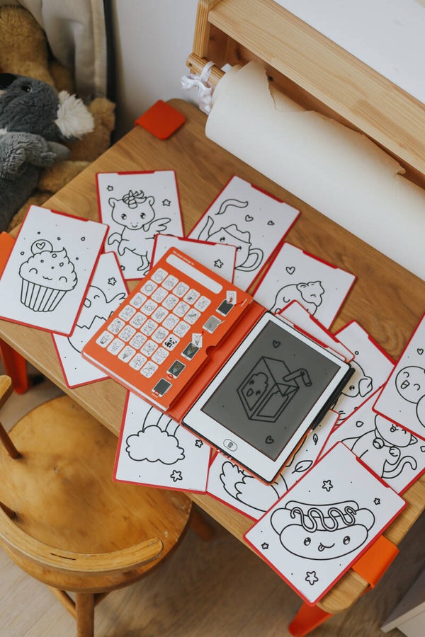 De Kidy Draw van KidyWolf combineert tekenen en ontdekken in één compact toestel. Dankzij het LCD-scherm en de meegeleverde 30 overdraagbare illustraties stimuleert dit tekenboek zowel creativiteit als zelfstandigheid. Kinderen kunnen eenvoudig de tekeningen overtrekken, wissen met één druk op de knop en hun werk bewaren via de handige vergrendelfunctie.