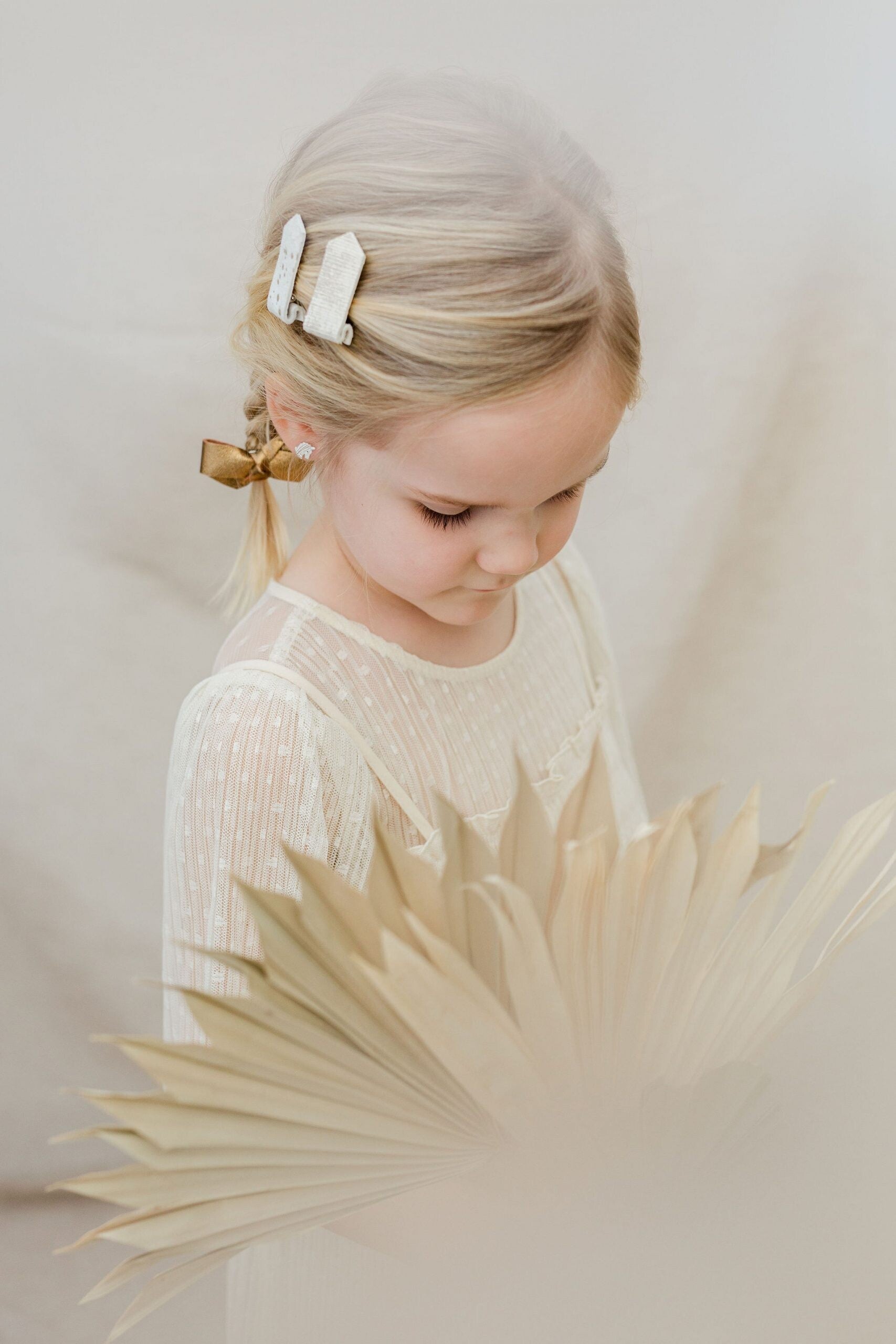 Met een lengte van ongeveer 3,8 cm zijn de leren haarspeldjes een veelzijdige aanvulling op de haaraccessoires van je kleintje.
