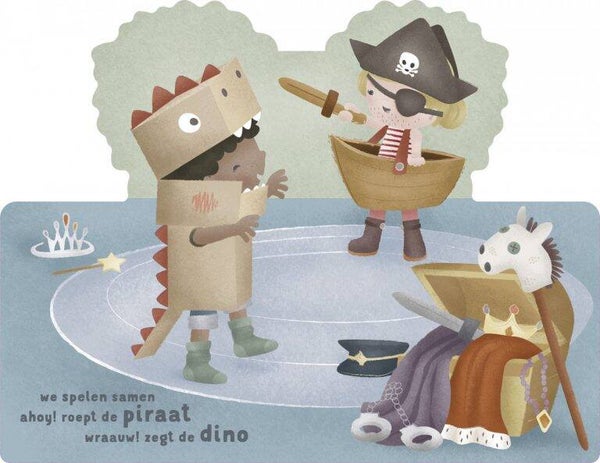 Dit schattige boek laat zien hoe leuk het is om samen te spelen met vriendjes! Of jullie nu steppen, bouwen met blokken of een verkleedpartijtje houden, elk kind kan zich herkennen in de verschillende vormen van spelen. Dit boek heeft een bijzondere vorm die uitnodigt om het op te pakken en samen door te bladeren, perfect voor een knus moment met je dreumes!