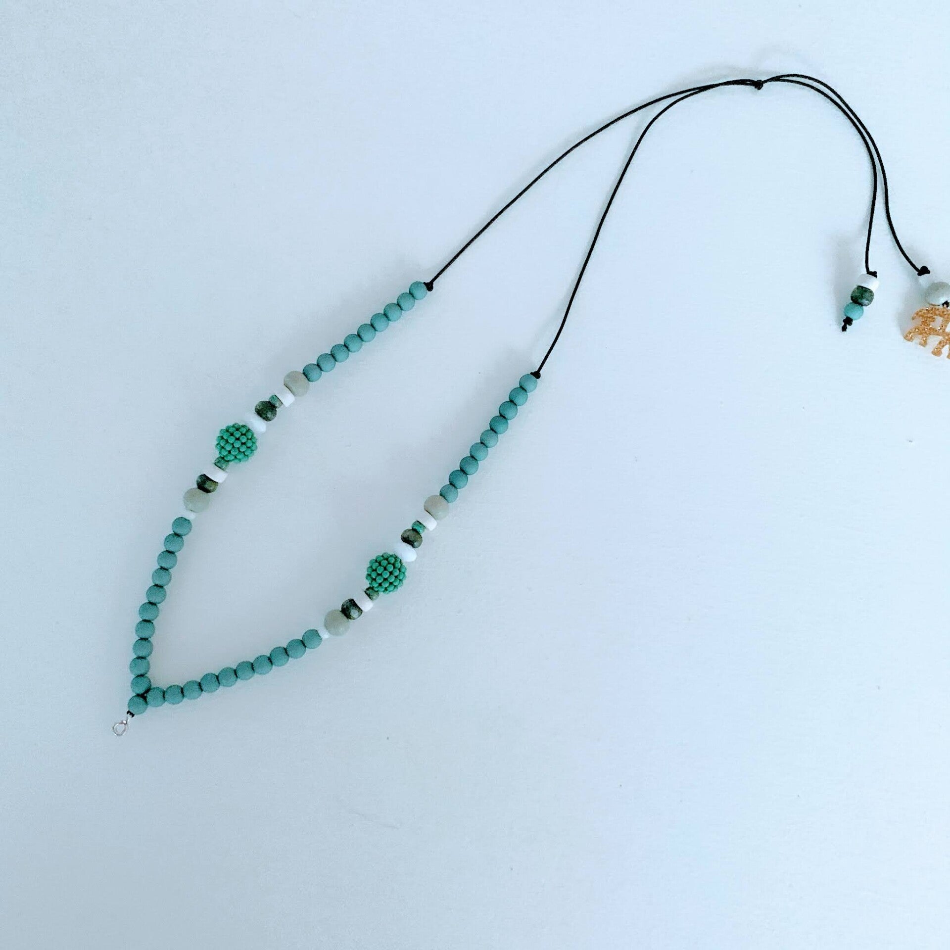 Lengte van de ketting: +/- 30 cm en is door middel van een knoopje te verstellen.