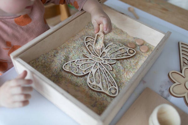 Breng plezier en creativiteit in het spel van je kind met deze houten speeltrays!